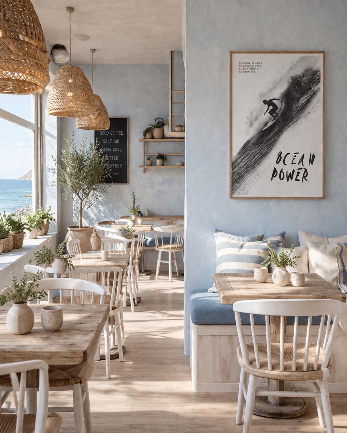A cramped café kills the coastal feeling instantly. The sea is open, your layout should reflect that.